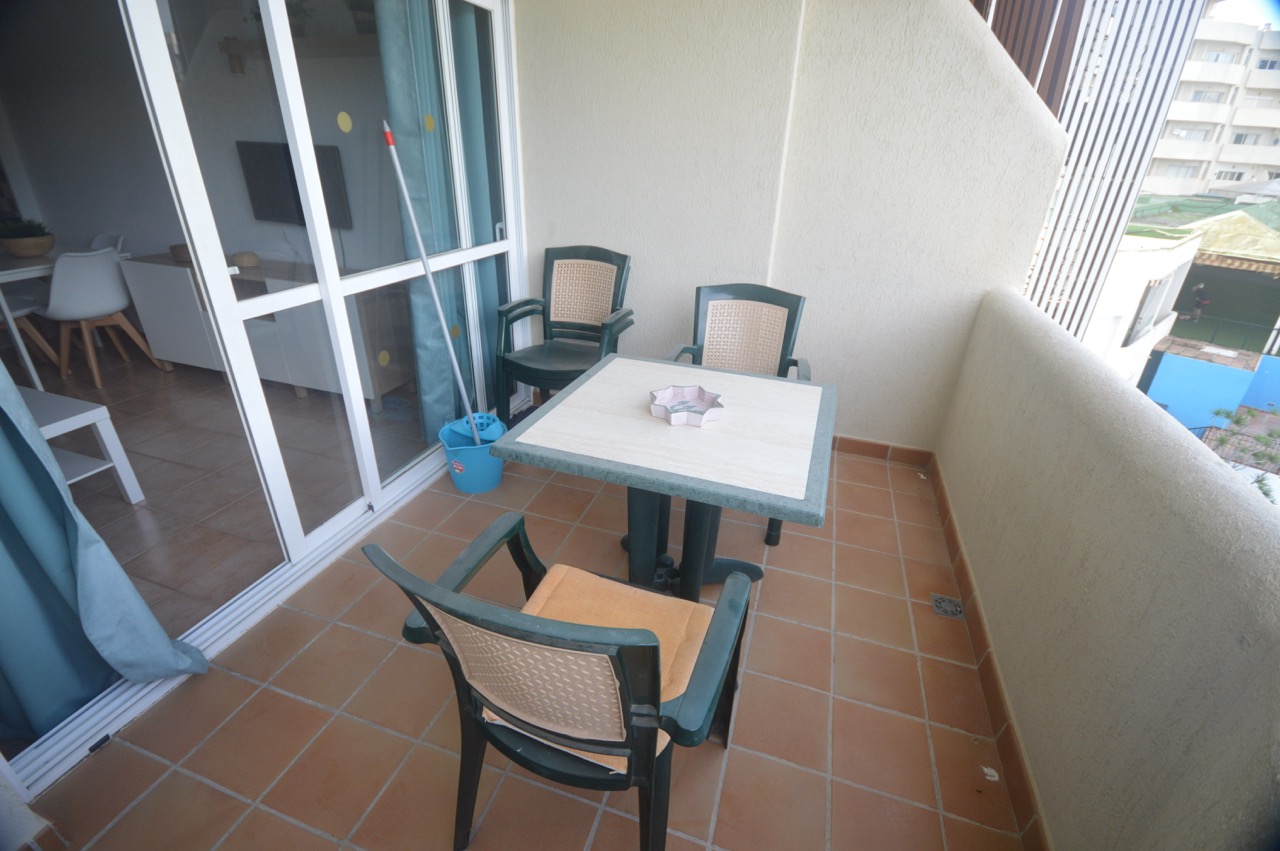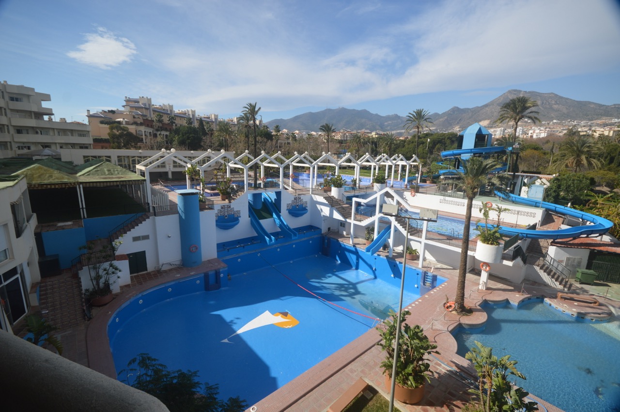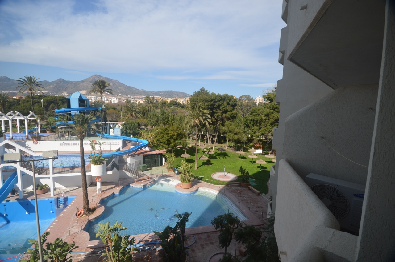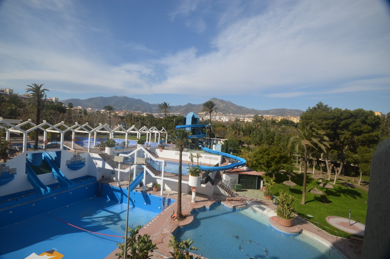 A lovely fourth floor one bedroom apartment, located in the grand Benal Beach complex! With an open-style and fully equipped kitchen with spacious lounge area/dinning area, fully refurbished bathroom and terrace overlooking the wonderful pool and garden area, you’ll be sure to enjoy your stay here! It has a pleasant terrace with views facing towards the community gardens and pools. Fantastic holiday home that is fully equipped for holiday rentals. Complex is located just a mere 100 meters from the beach and close to many diverse services: like bars, restaurants and supermarkets. It is well comunicated with public transport and taxi services. Complex offers 5 big swimming pools with slides, 24 hour reception  relaxing garden areas and also gym area (required membership).