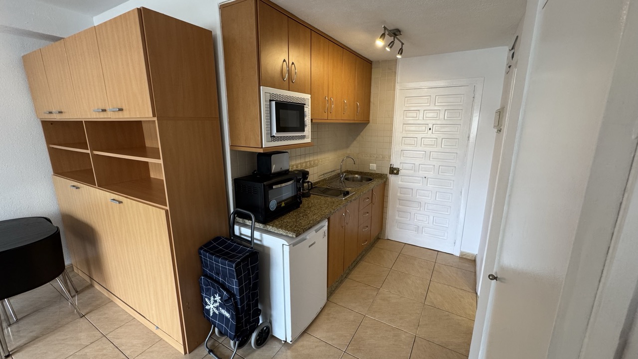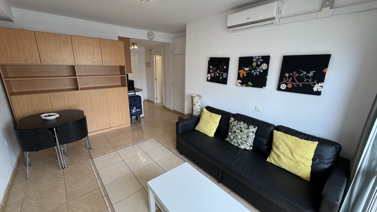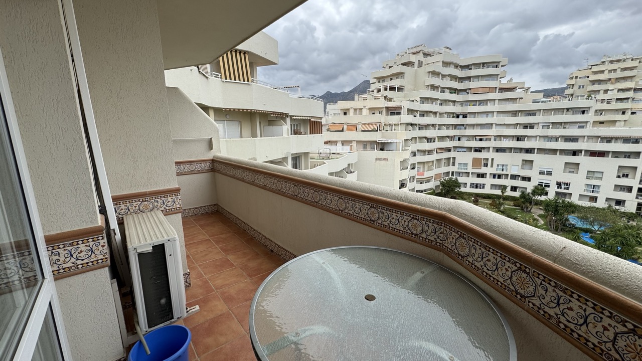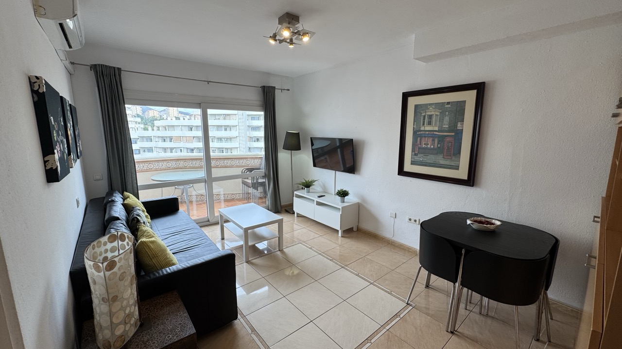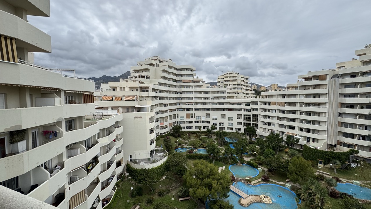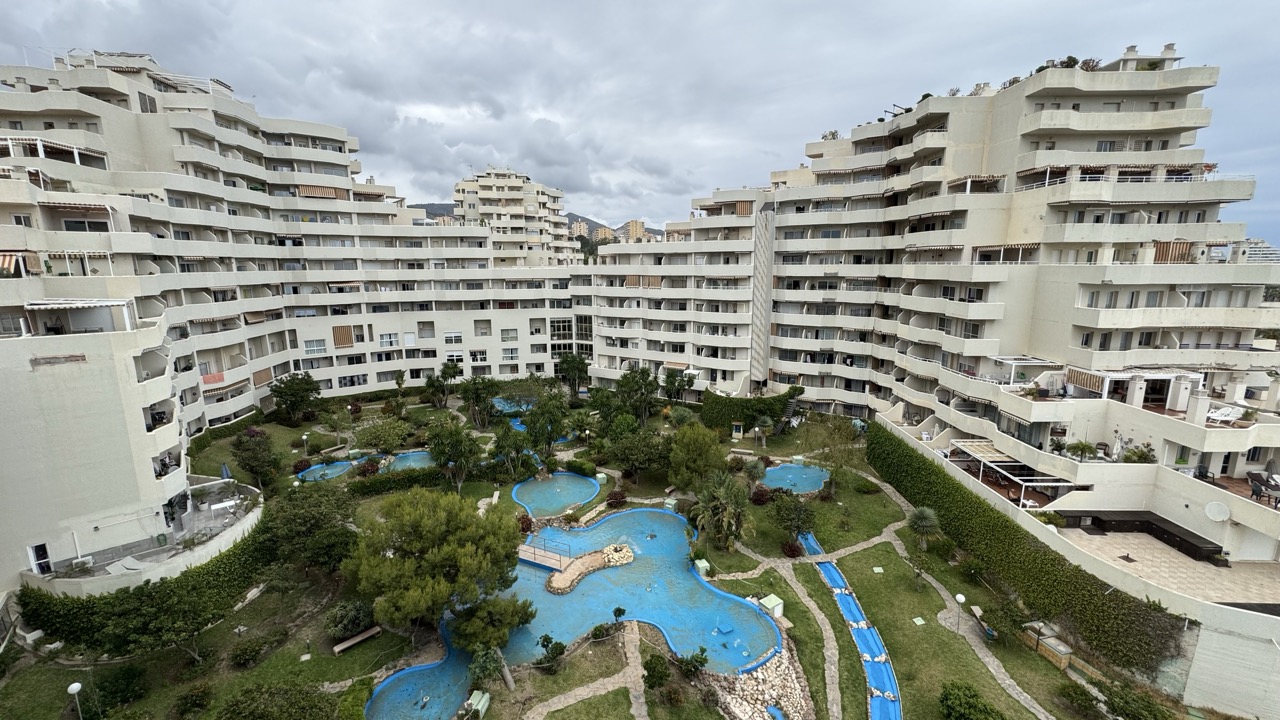 A fantastic sixth floor and one bedroom apartment located in the Benal Beach complex! Very open and equipped kitchen with spacious lounge area/dinning area, fully refurbished bathroom and big bedroom with terrace. North facing terrace with views of the poolside. Fantastic holiday home that is fully equipped for holiday rentals. Complex is located just a mere 200 meters from the beach and close to many diverse services: like bars, restaurants and supermarkets. It is well comunicated with public transport and taxi services. Complex offers 5 big swimming pools with slides, 24 hour reception relaxing garden areas and also gym area (required membership)
